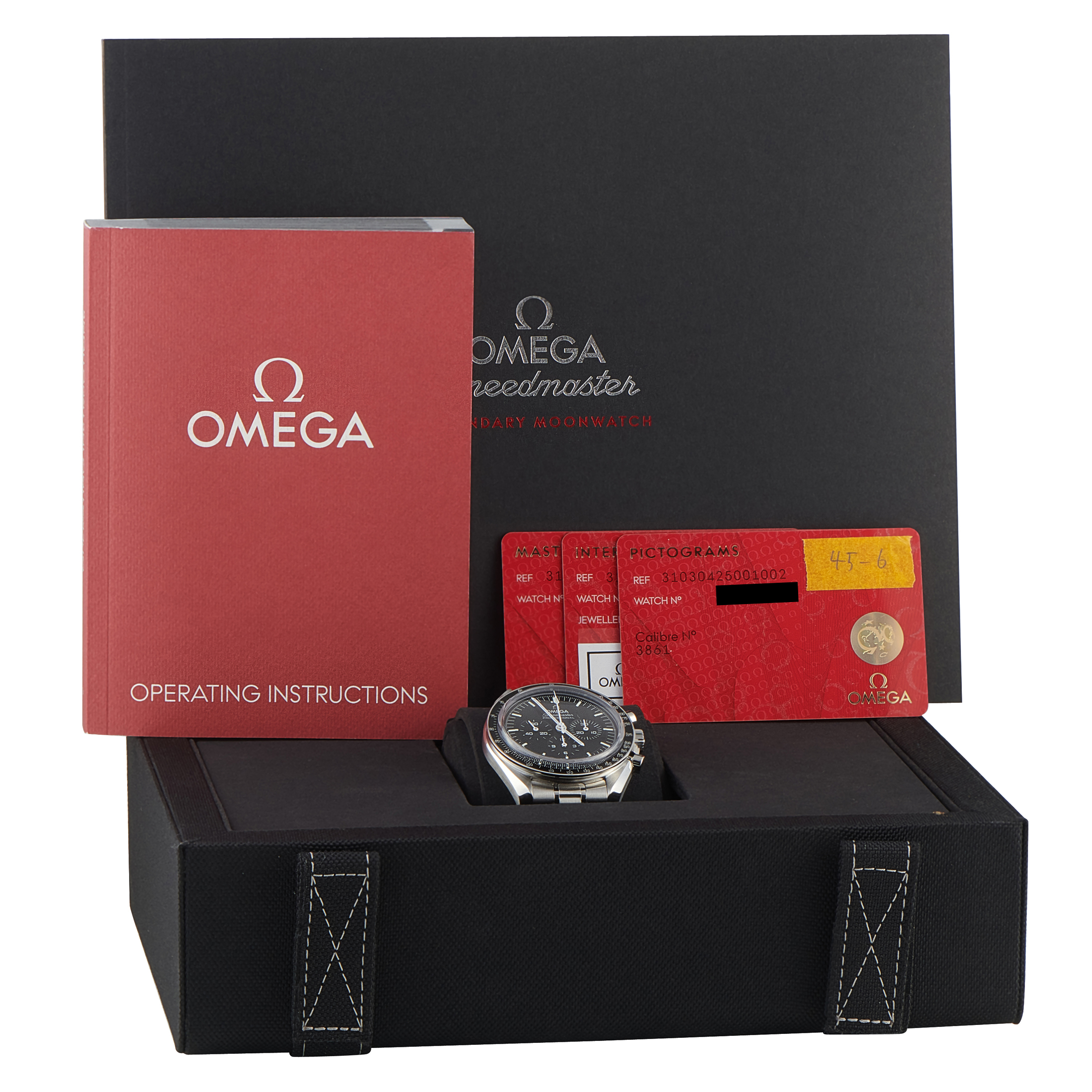 This pre-owned Omega Speedmaster Moonwatch Professional Watch 310.30.42.50.01.002 comes with papers and the manufacturer’s box.