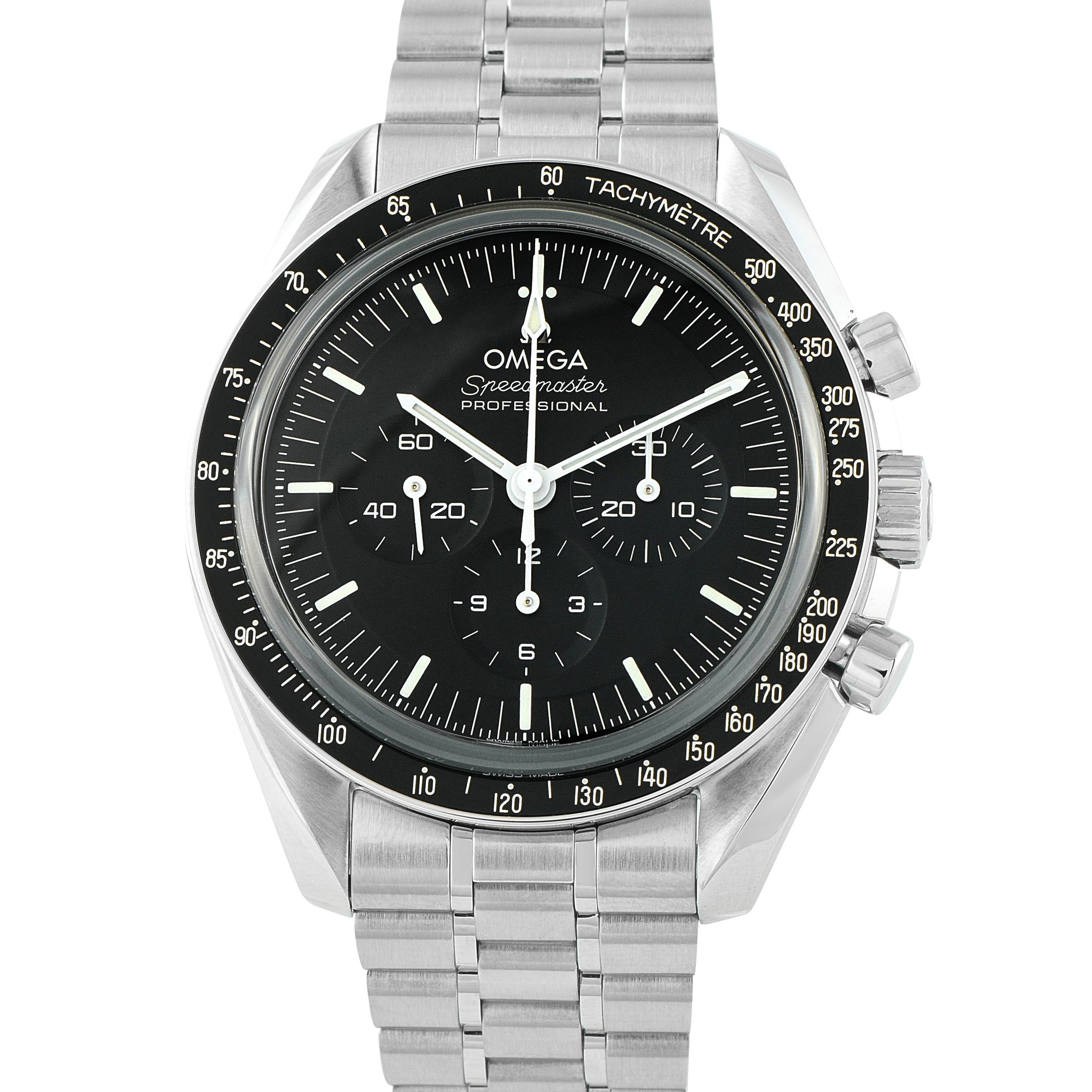 This vintage Speedmaster Reduced comes with a more compact 39mm case in 18K yellow gold, paired with a gold bezel bearing a tachymeter scale. It frames a black dial with gold sub-dials and luminescent hands. Inside beats the automatic Caliber 1140 modular chronograph movement. Worn on a leather strap, this model’s midsize profile and rich gold look give it serious appeal to collectors of fine watches.