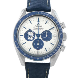Offered pre-owned, this Omega Speedmaster Silver Snoopy Award Anniversary Watch 310.32.42.50.02.001 comes with papers and the manufacturer’s box.