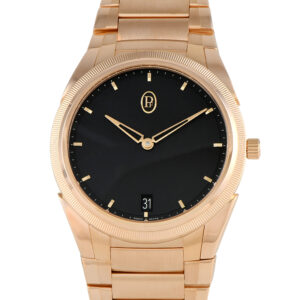 A rose gold watch that effortlessly demonstrates refinement and restraint. Discerning watch collectors will surely notice the subtle sophistication of the Tonda PF Micro-Rotor watch by Parmigiani Fleurier. Its 40mm case, knurled bezel, and integrated bracelet are all crafted in 18K rose gold, showcasing a balance of polished and satin-brushed finishes. The uncluttered face comes in a warm gray finish with a beautiful ‘Grain d’Orge’ guilloché pattern. On the dial are skeletonized delta-shaped hands, rose gold applique indices, and a discreet date window at 6 o’clock. The Parmigiani Fleurier logo sits just below the 12 o’clock marker.
