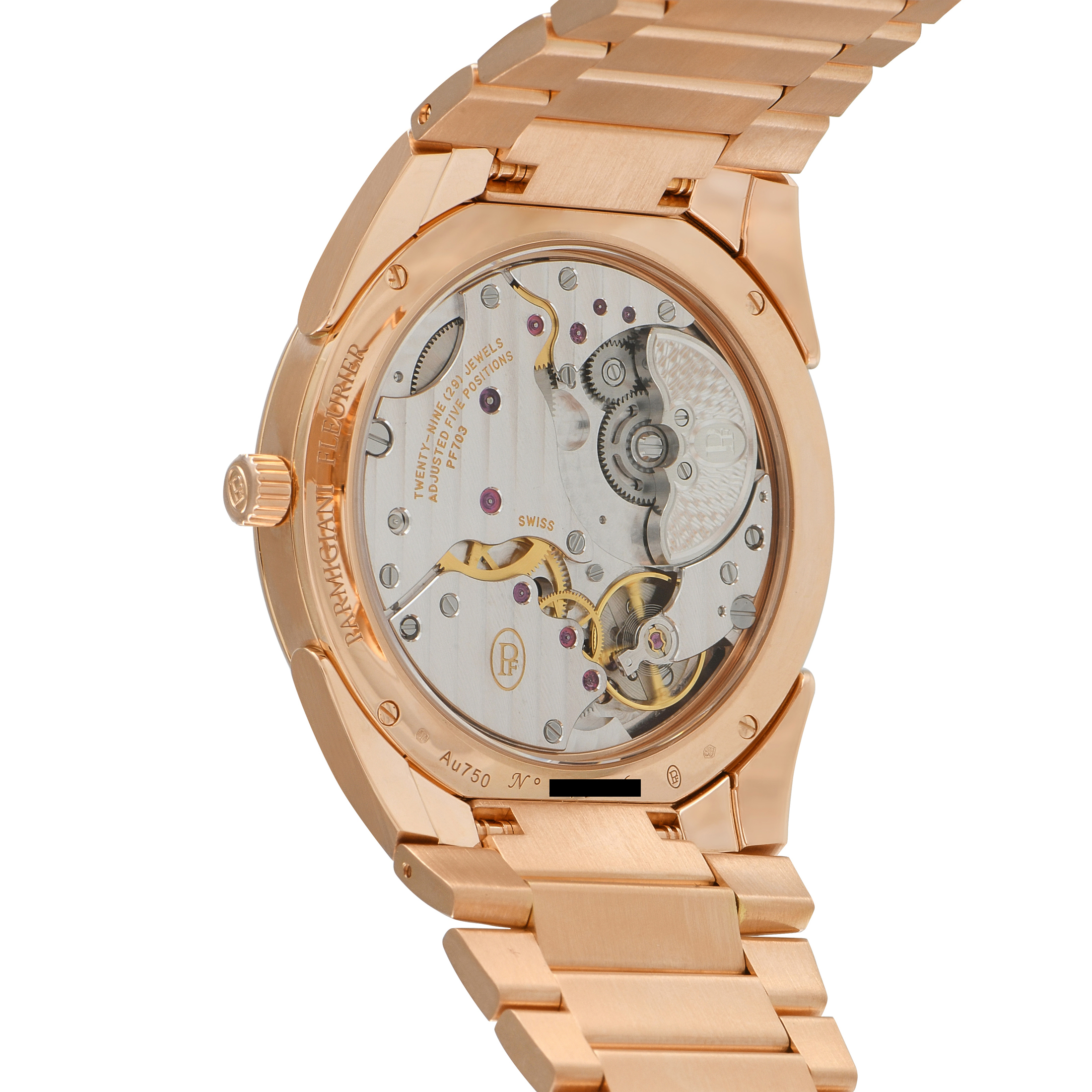 The Parmigiani Fleurier Tonda PF Micro-Rotor Ref.PFC914-2020001-200182 is equipped with the ultra-thin caliber PF703, a self-winding movement with 176 components, 29 jewels, and 48 hours of power reserve.