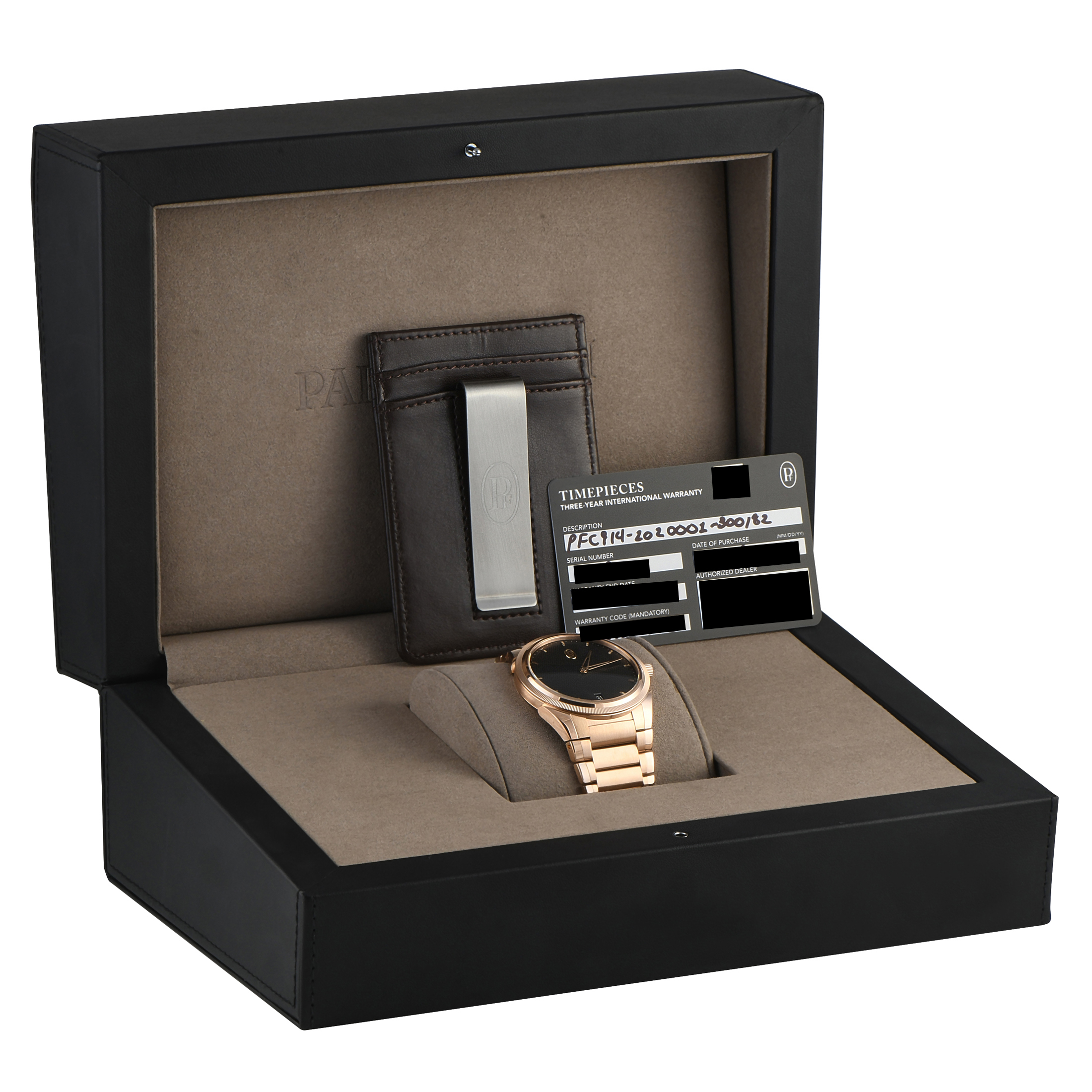This unworn Parmigiani Fleurier Tonda PF Micro-Rotor 18K Rose Gold Watch PFC914-2020001-200182 comes with papers and the manufacturer’s box.