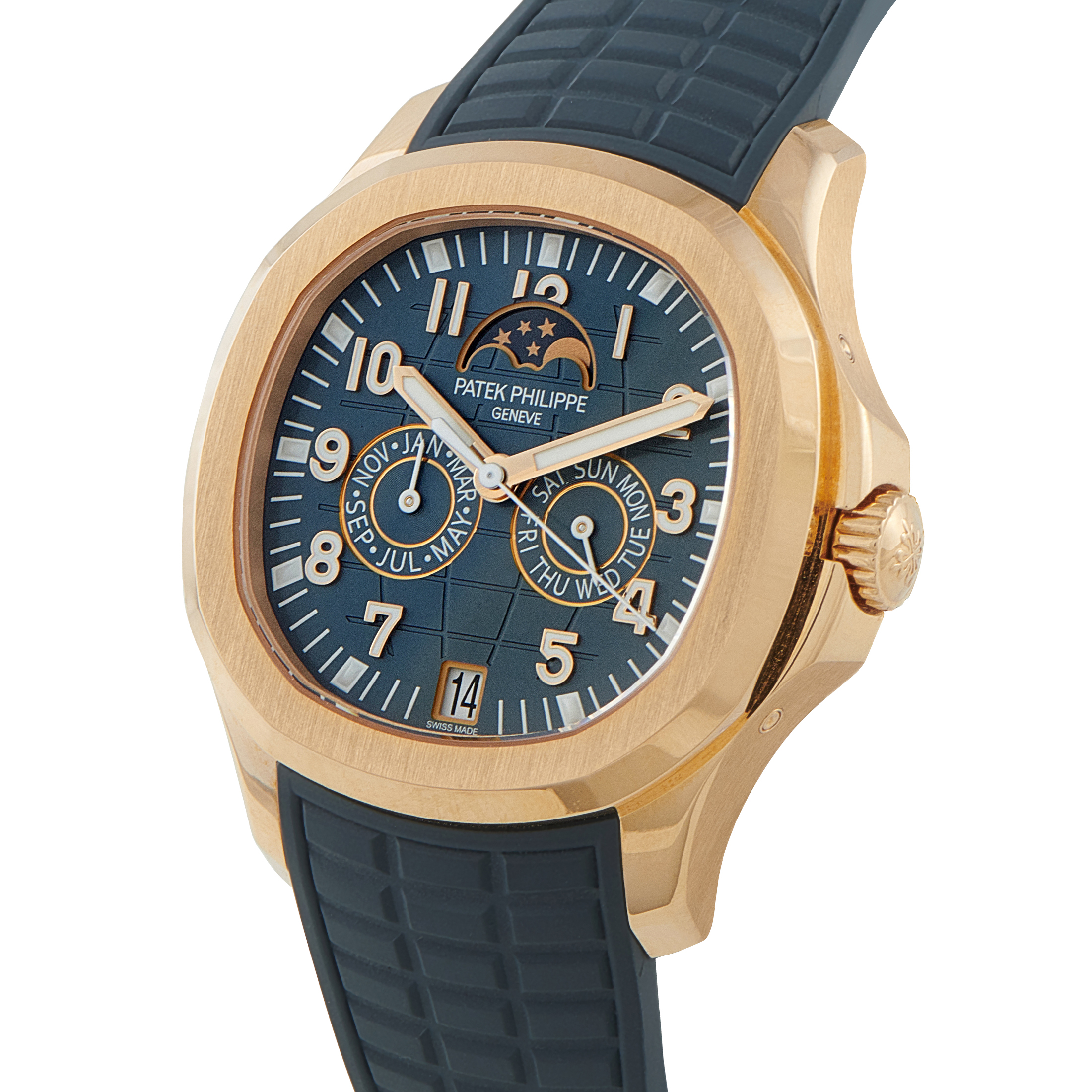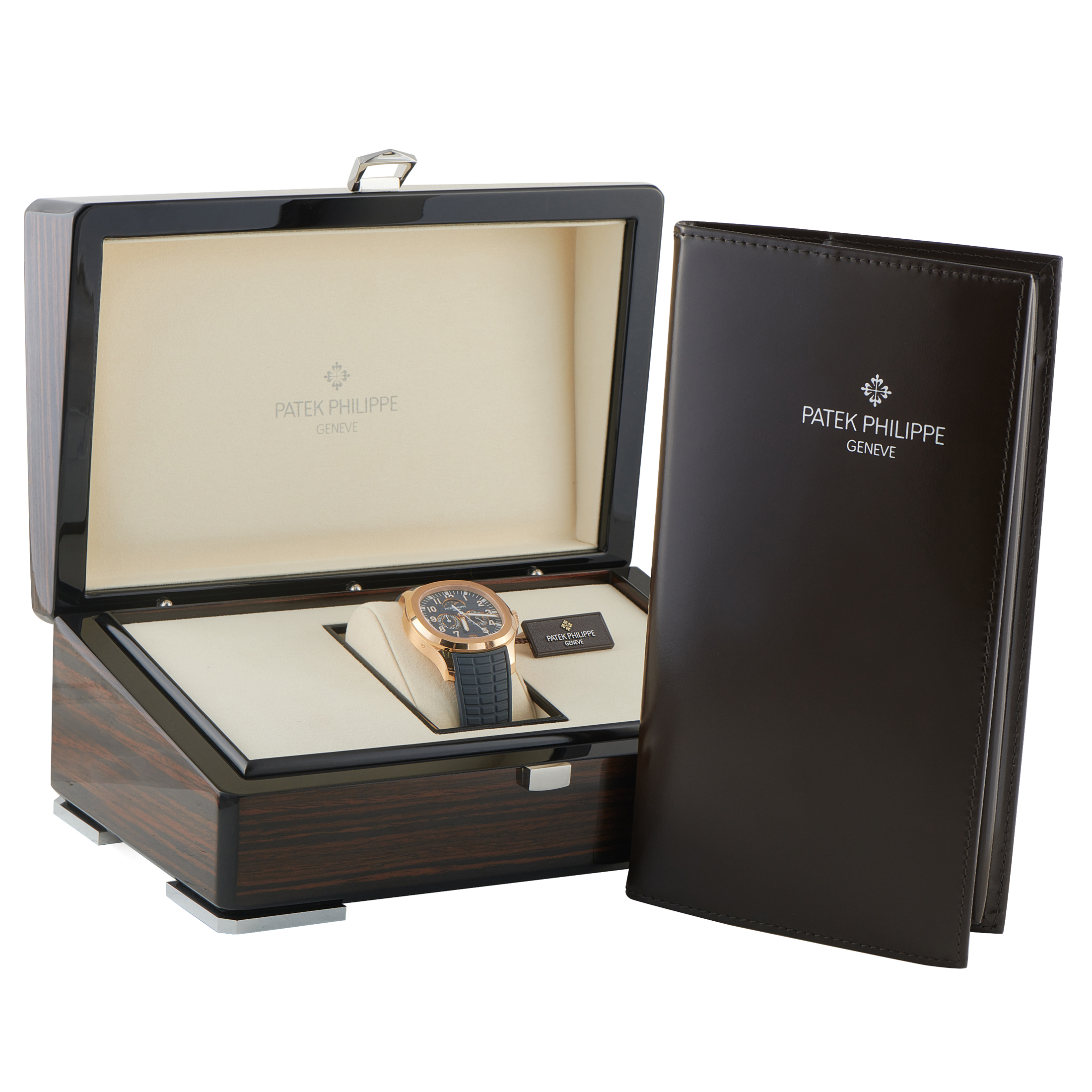 This pre-owned Patek Philippe Aquanaut Luce Annual Calendar 18K Rose Gold Watch 5261R-001 comes with the original manufacturer’s packaging, a leather bifold, and all associated paperwork.