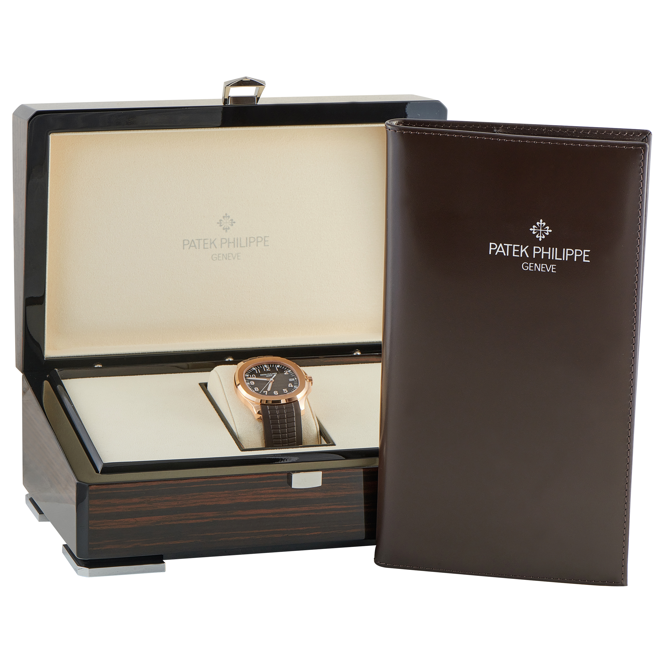 This Patek Philippe Aquanaut 18K Rose Gold Watch 5167R comes with the manufacturer’s presentation box and papers.