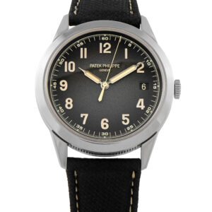 A favorite among collectors, the Patek Philippe Calatrava ref. 5526G presents a seamless balance of Patek Philippe’s timeless elegance and a modern, casual aesthetic. Its charcoal gray dial displays vintage styling with its textured finish and syringe-shaped hands. The 40mm white gold case has the “Clous de Paris” hobnail pattern around the entire caseband. The self-winding Caliber 26-330 S C movement powers the watch, delivering precise and reliable timekeeping while showcasing Patek Philippe’s meticulous finishing.