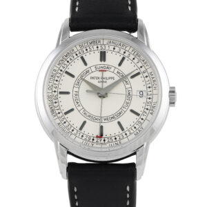 Offered in pre-owned condition, this Patek Philippe Calatrava Weekly Calendar Watch 5212A-001 includes papers, three extra pairs of leather straps, and the manufacturer’s box.