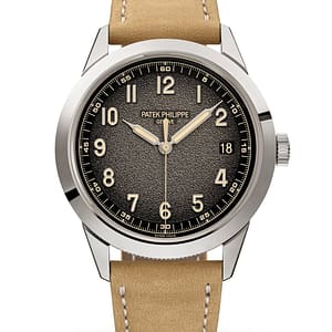 This is an unworn Patek Philippe White Gold Calatrava 5226G-001. It comes complete with papers and the manufacturer’s box.