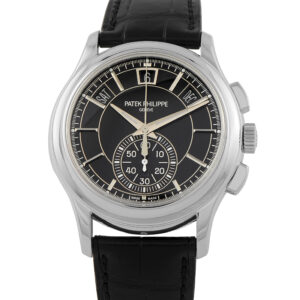 This pre-owned Patek Philippe Annual Calendar Chronograph Platinum Watch 5905p-010 comes with papers and the manufacturer’s box.