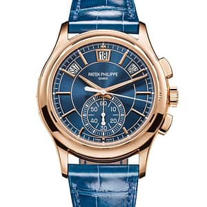 This is an unworn Patek Philippe Complications 5905R-010. It comes complete with papers and the manufacturer’s box.