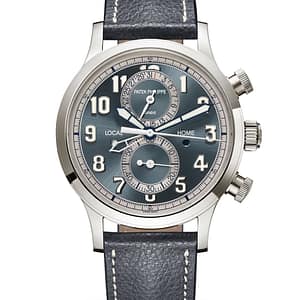 The Patek Philippe Complications 5924G-001 introduces the first chronograph in the brand’s Pilot-style watch series, seamlessly integrating a flyback chronograph with the renowned Travel Time function. Crafted from 18k white gold, the case measures 42 mm in diameter and has a height of 13.05 mm, offering a substantial yet refined presence on the wrist.