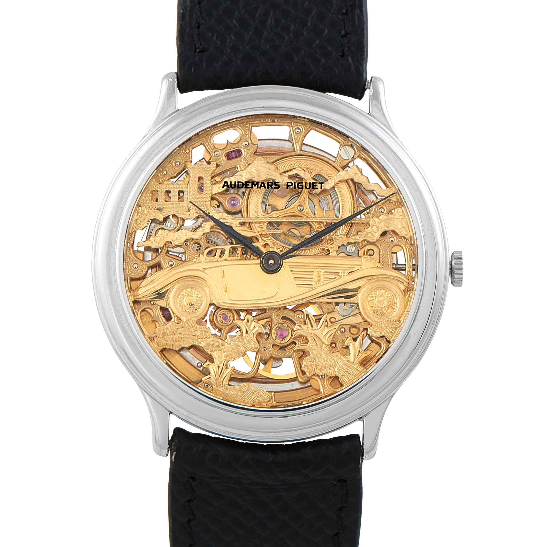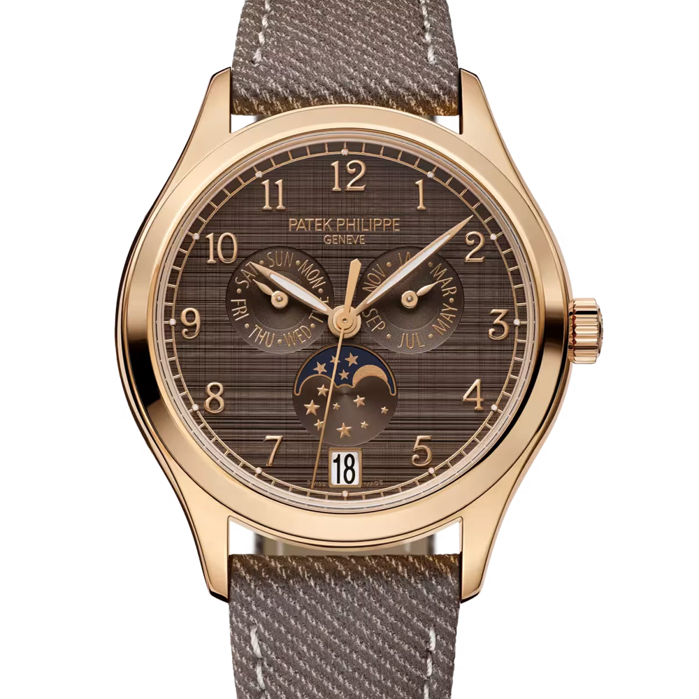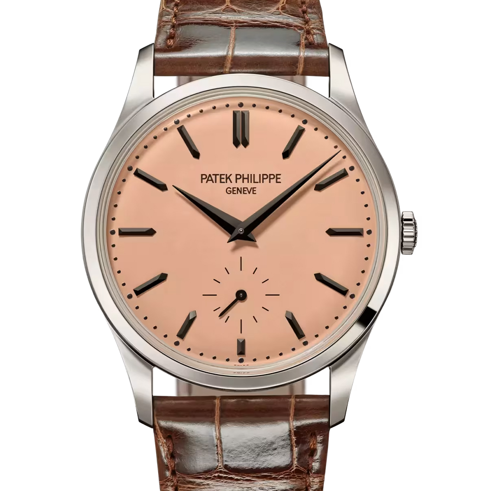 The rose gold 5070 model by Patek is believed to have only a thousand examples produced. This fine chronograph is presented with a 42mm case housing a silver dial with two counters, applied rose gold Arabic numeral hour markers, and elegant rose gold leaf hands. The transparent case-back reveals the Lemania-based manual caliber CH 27-70 that packs 60 hours of power reserve. The watch is secured on the wrist by a leather strap with a simple folding buckle in rose gold.