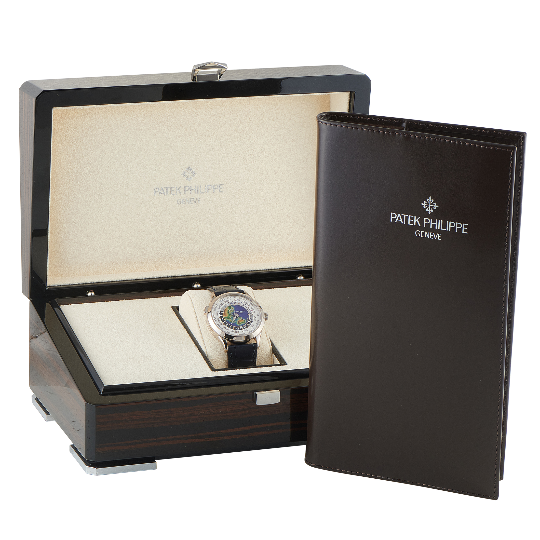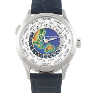 The Patek Philippe Complications World Time 18K White Gold Watch, reference number 5231g-001, is a colorful timepiece that pays tribute to Southeast Asia and Oceania.