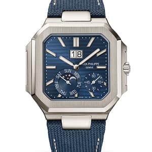 This is an unworn Patek Philippe Cubitus 5822P-001. It comes complete with papers and the manufacturer’s box.