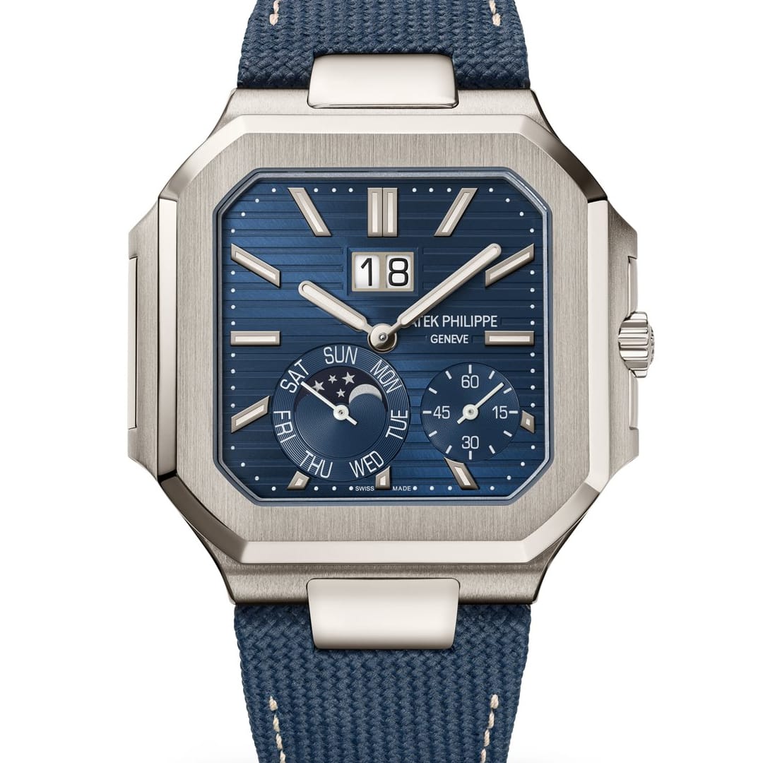 This is an unworn Patek Philippe Cubitus 5822P-001. It comes complete with papers and the manufacturer’s box.