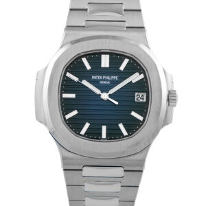 This is an unworn Patek Philippe Nautilus Blue Dial 18K White Gold Watch 5811/1g-001. It is accompanied by papers and the manufacturer’s box.
