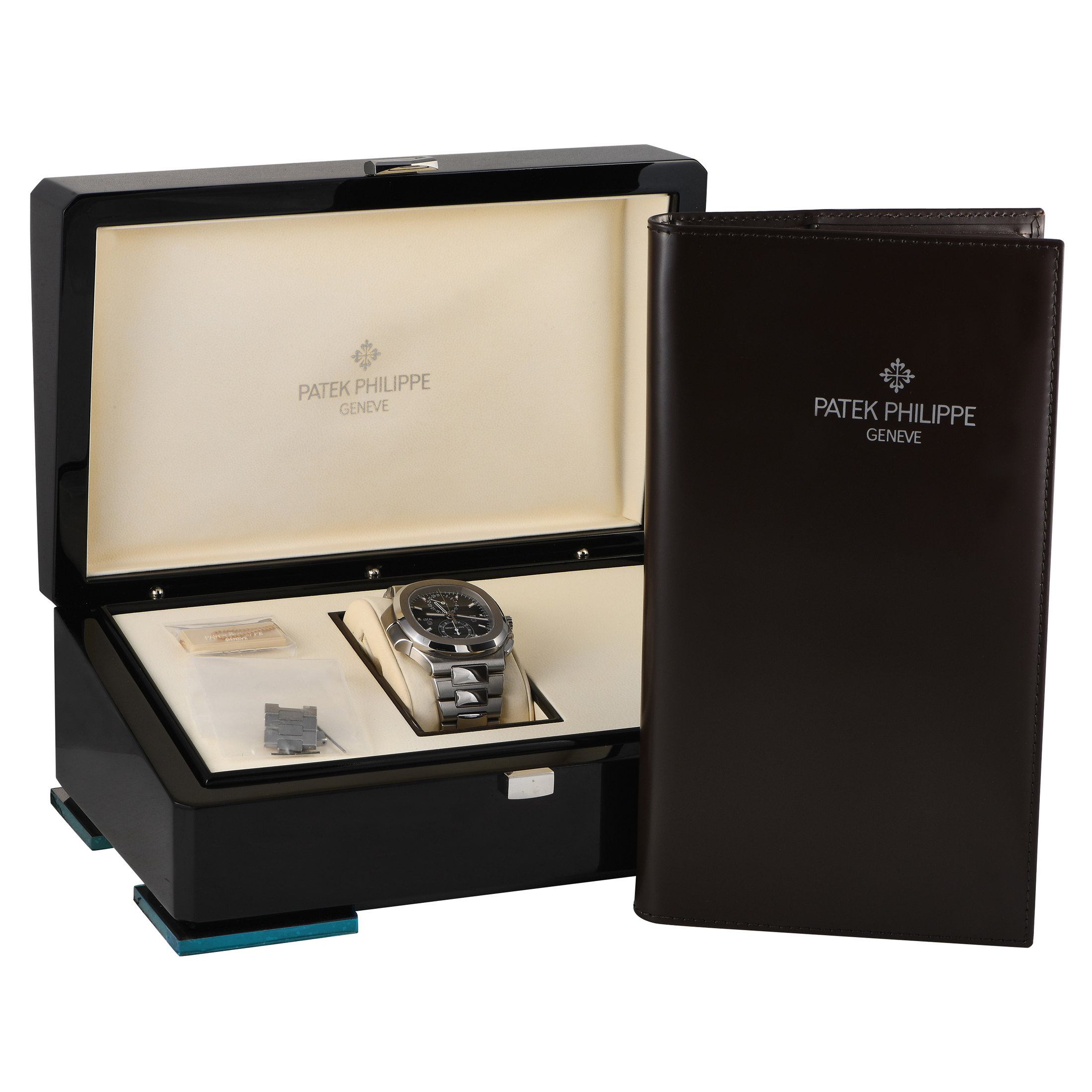 This pre-owned Patek Philippe Nautilus Travel Time Watch 5990/1A-001 is accompanied by papers and the manufacturer’s box.