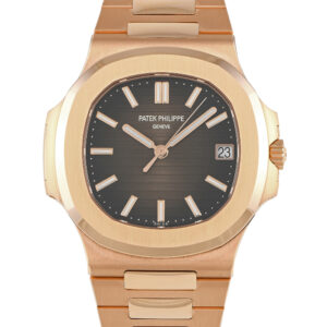 Stunning in rose gold, this Nautilus ref.5711/1R-001 makes an incredible addition to any watch collection. It boasts an exquisitely finished rose gold case and bracelet, complemented by a rich brown dial with luminous rose gold hour markers and hands. The mirror-polished bezel and case edges harmonize beautifully with the brushed finish of the flat surfaces. Turn the watch over and you’ll see Patek’s in-house caliber 324 S C. This automatic movement delivers 45 hours of power reserve.