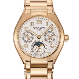 The Patek Philippe Twenty~4 7340/1R-001 introduces a new dimension of sophistication to the Twenty~4 collection by integrating a full perpetual calendar complication into a classic rose-gold timepiece. Crafted in 18 k rose gold, the watch features a 36 mm round case and a polished, non-gemset bezel, preserving a clean and elegant silhouette.