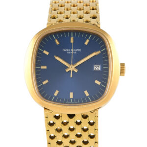 The Beta 21 was Patek’s first quartz wristwatch. It features a thick case made in-house to accommodate the movement, a mesh-style bracelet dubbed by some as “Swiss Cheese,” and a blue “Sigma” dial with gold elements to match the rest of the watch. It is incredibly rare and will be a prized find for anyone who appreciates a watch with this much history.