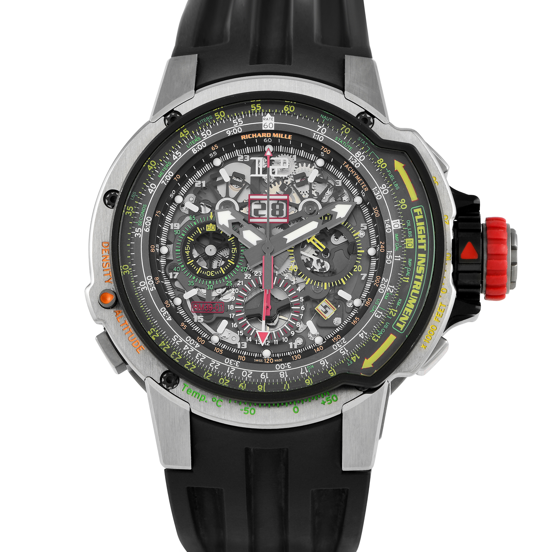 This pre-owned Richard Mille RM39-01 Aviation E6-B Watch comes with papers and the manufacturer’s box.