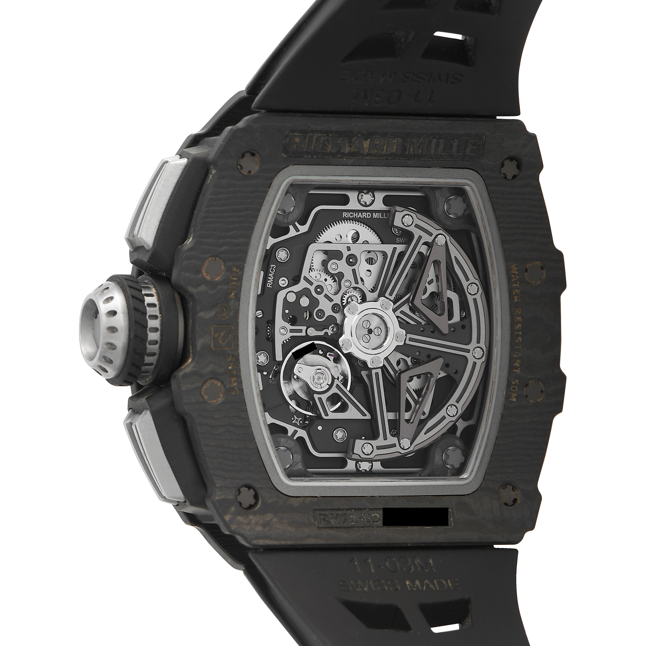 This pre-owned Richard Mille RM11-03 Carbon Automatic Flyback Chronograph Watch RM11-03 NTPT comes with papers and the manufacturer’s box.