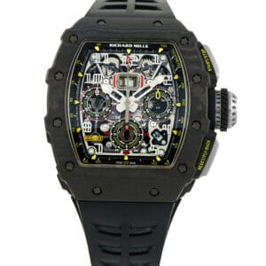 This is a pre-owned Richard Mille RM11-03 Skeleton Dial Black NTPT Carbon Watch RM11-03 NTPT. It is accompanied by papers and the manufacturer’s box.