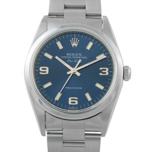 Produced during the late 1990s and early 200s, the Rolex Air-King ref. 14000M is regarded as a neo-vintage timepiece with a classic aesthetic and an upgraded movement. Its 34mm stainless steel case houses the in-house Caliber 3130 automatic movement, which offers approximately 48 hours of power reserve. The blue dial presents a clean, uninterrupted layout free of date or excess text. The watch’s restrained design keeps a low profile on the wrist, with proportions that favor comfort over attention.