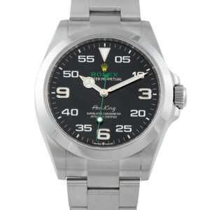 This is a pre-owned Rolex Air-King Oystersteel Watch 126900, accompanied by papers and the manufacturer’s box.