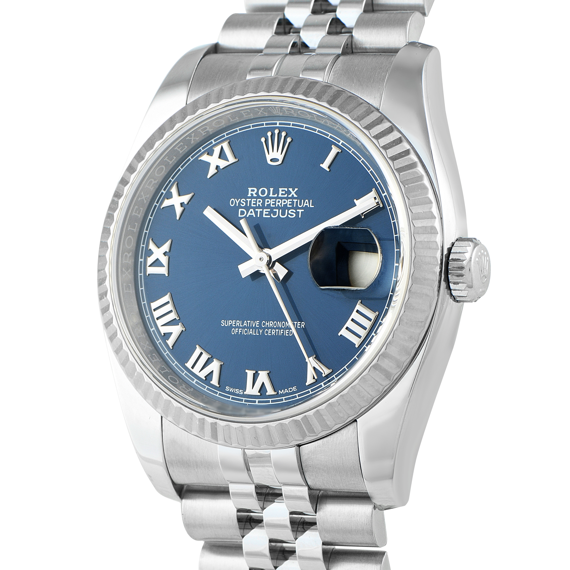 RolexDatejust 36 Blue Roman Dial Steel and White Gold Jubilee Watch 116234