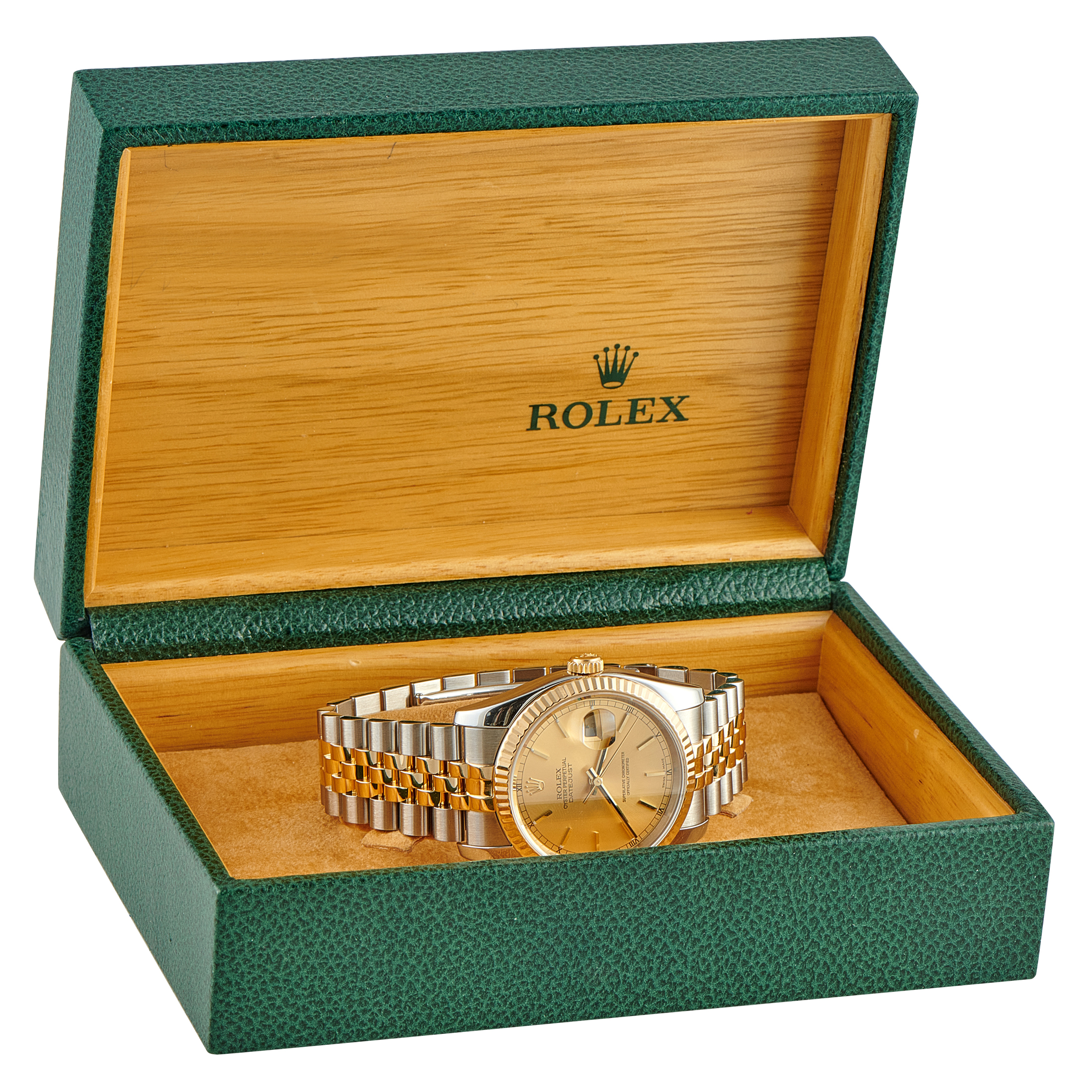 A timepiece made to fit seamlessly into your routine while still offering something special every time you wear it. Rolex’s Datejust 36 ref. 116233 comes with a compact form and a two-tone construction, featuring a 36mm Oystersteel case paired with an 18K yellow gold fluted bezel, and worn on a five-piece-link steel-and-gold Jubilee bracelet. The champagne dial keeps things warm and easy to read, with hour markers that are clean and straightforward. The automatic Caliber 3135 movement keeps time with steady reliability, offering a power reserve of approximately 48 hours.