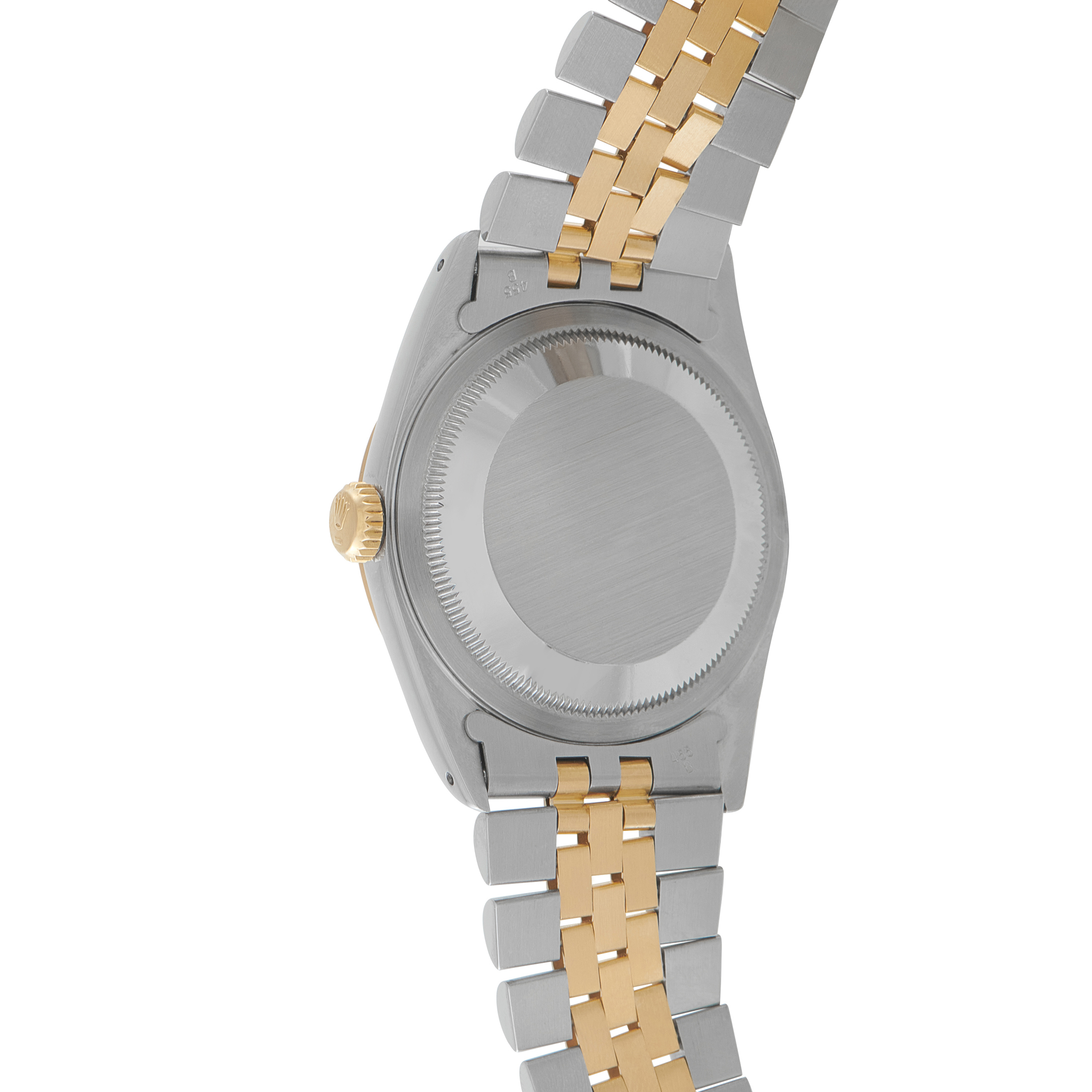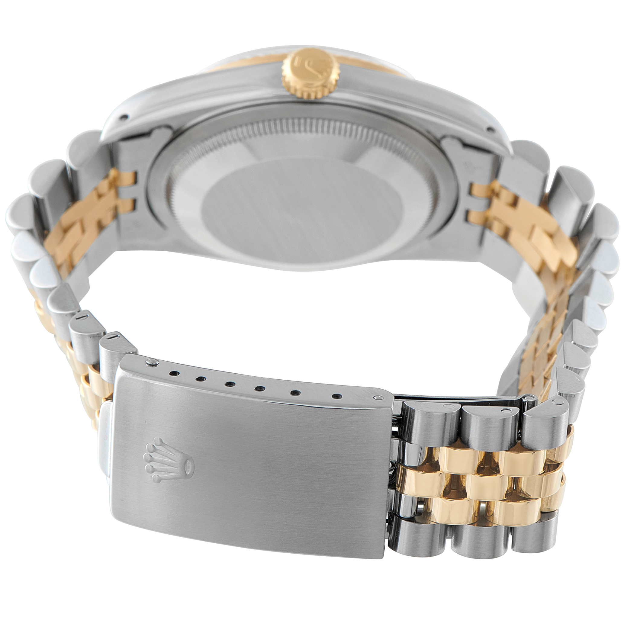 Marking a turning point for the Datejust, the ref. 16233 introduced a sapphire crystal to the Rolesor line. In this model, an 18k yellow gold fluted bezel meets a champagne sunburst dial, creating a cohesive look. Gold on gold, grounded by steel. The 36mm case features brushed lug tops for contrast, while the Jubilee bracelet keeps the two-tone aesthetic consistent. Powered by caliber 3135, it delivers dependable chronometer performance in a format that defined the modern two-tone Datejust.