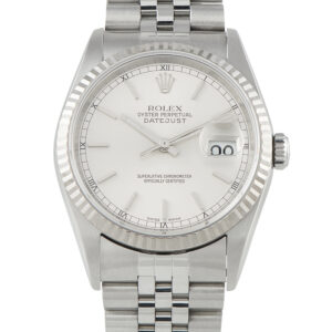 This pre-owned Rolex Datejust 36 Silver Dial White Rolesor Jubilee Watch 16234 comes with a gift box.
