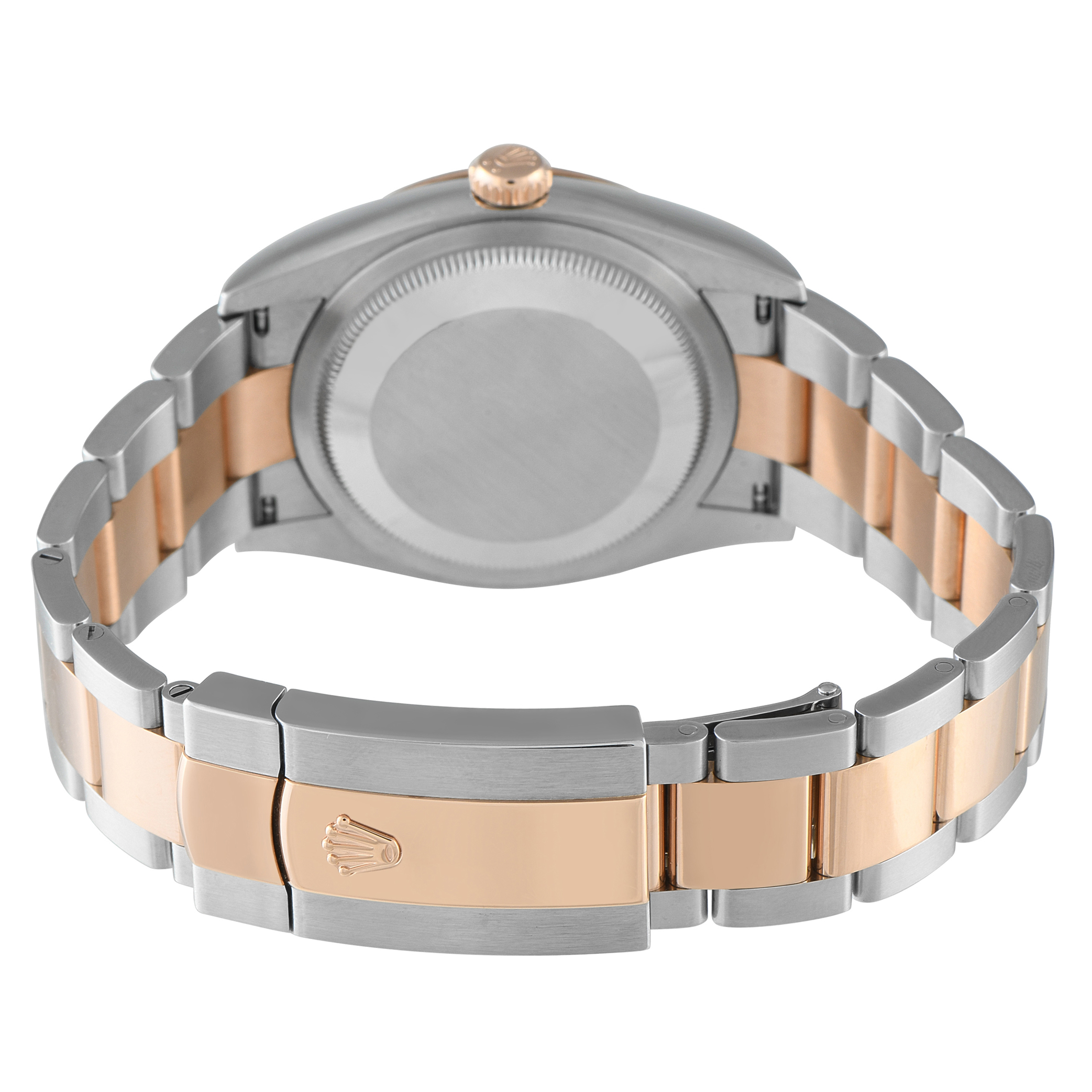 This is a pre-owned Rolex Datejust 36 Wimbledon Dial Everose Gold and Oystersteel Watch 126201. It comes with papers and the manufacturer’s box.