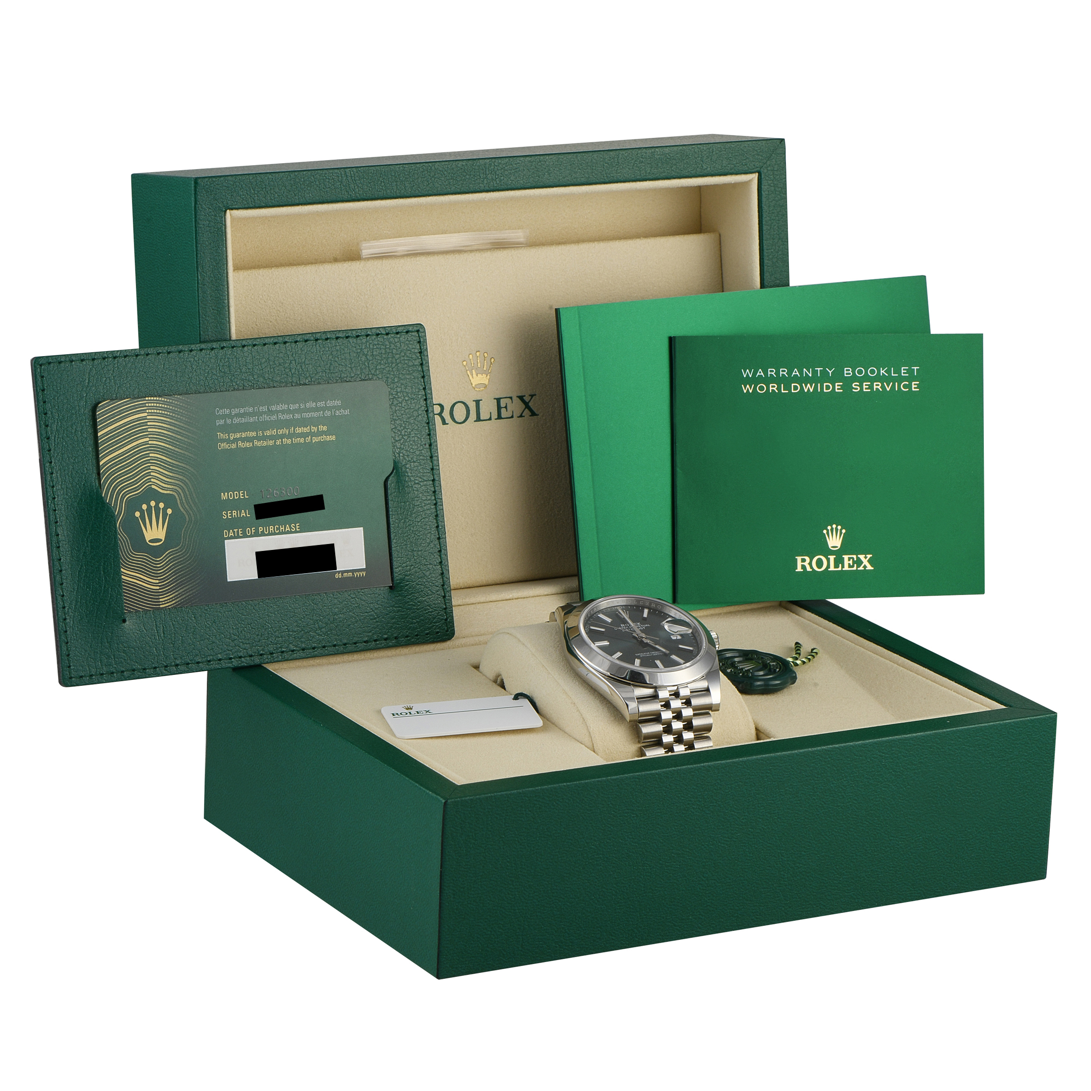 Ref. 126300 is the simplest version of the Datejust 41. With a classic smooth steel bezel, it can fly under the radar more easily than variants with fluted bezels. The bracelet and case are made of Oystersteel, Rolex’s brand name for their 904L stainless steel. The Datejust 41 is offered in a variety of dial colors, and it remains one of the most consistently popular men’s Rolex watches. Its caliber 3235 movement guarantees accuracy within 2 seconds per day, with 70 hours of power reserve.