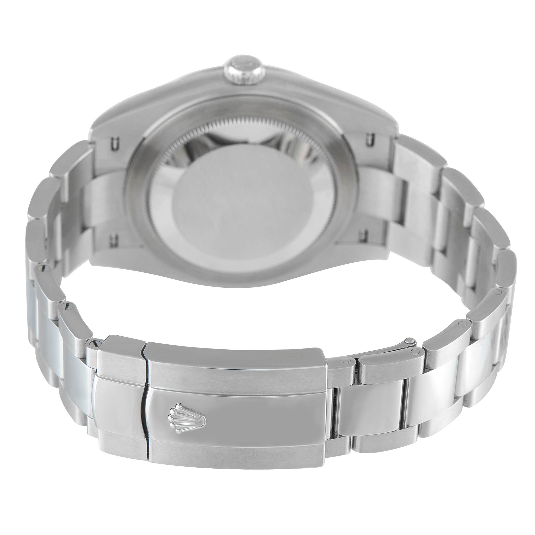 Ref. 126300 is the simplest version of the Datejust 41. With a classic smooth steel bezel, it can fly under the radar more easily than variants with fluted bezels. The bracelet and case are made of Oystersteel, Rolex’s brand name for their 904L stainless steel. The Datejust 41 is offered in a variety of dial colors, and it remains one of the most consistently popular men’s Rolex watches. Its caliber 3235 movement guarantees accuracy within 2 seconds per day, with 70 hours of power reserve.