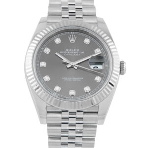 This is a pre-owned Rolex Datejust 41 Slate Dial with Diamonds Jubilee Watch 126334. It comes with papers and the manufacturer’s box.