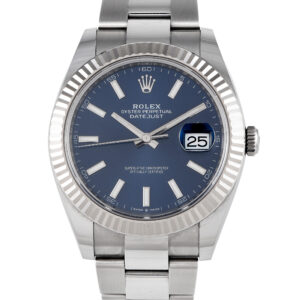 The perfect modern wristwatch for everyday luxury. The Rolex Datejust ref.126334 features a 41mm-wide and 12mm-thick Oystersteel case framed by Rolex’s iconic fluted bezel in 18K white gold. The lugs, bracelet, and solid case back are all in Oystersteel. The handsome blue dial that displays the time and date is protected by a sapphire crystal. Inside the watch is caliber 3235 self-winding movement that offers up to 70 hours of power reserve.
