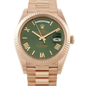 RolexDay-Date 40 Olive Green Roman Dial Everose Gold President Watch 228235