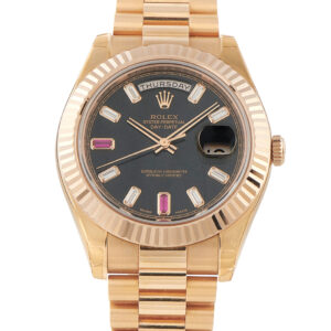 Rolex Day-Date II 41 Black Diamond and Ruby Baguette Dial Everose Gold President Watch $54,495 Take a Look