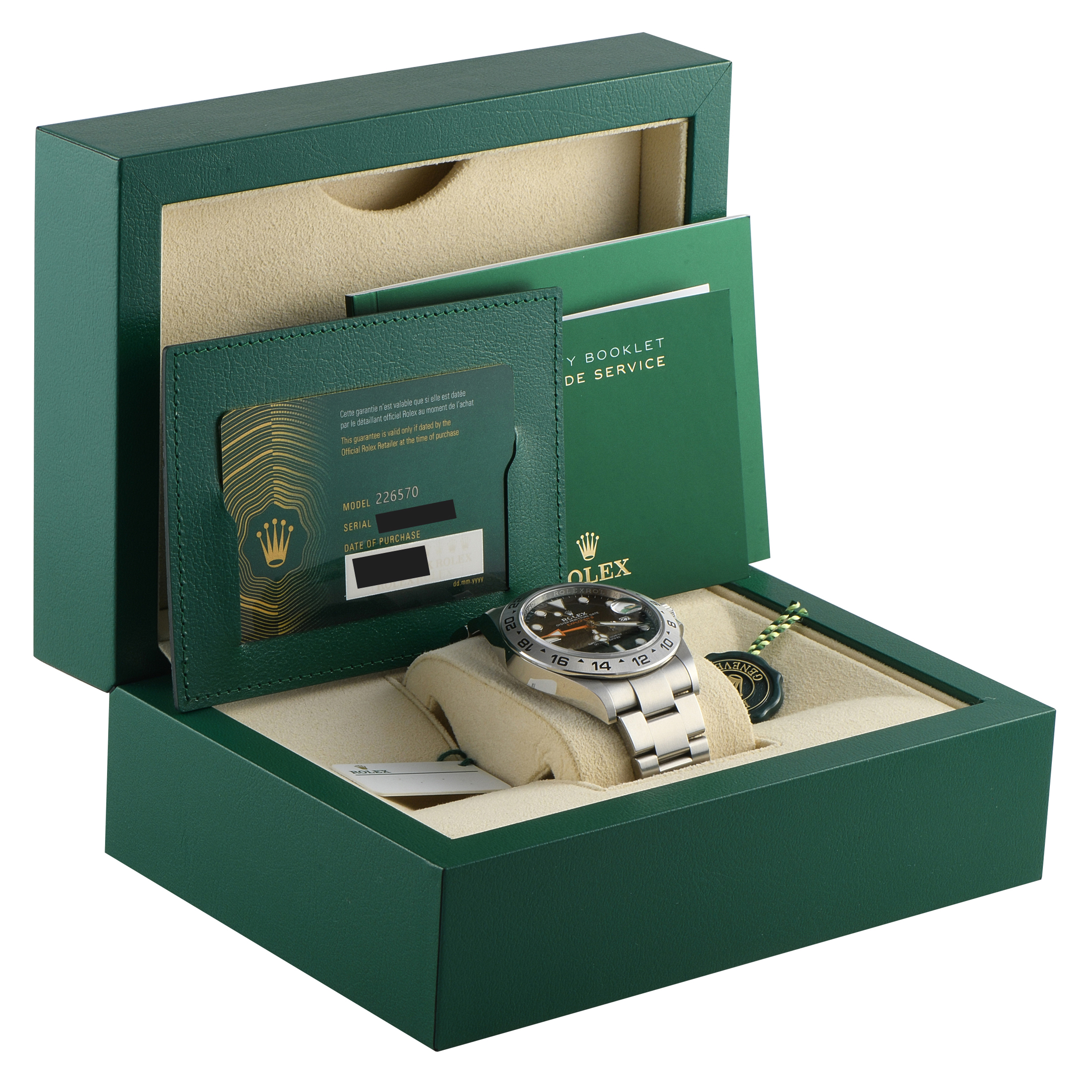 This is a Pre-Owned Rolex Explorer II 226570. It comes with the manufacturer’s box and papers.