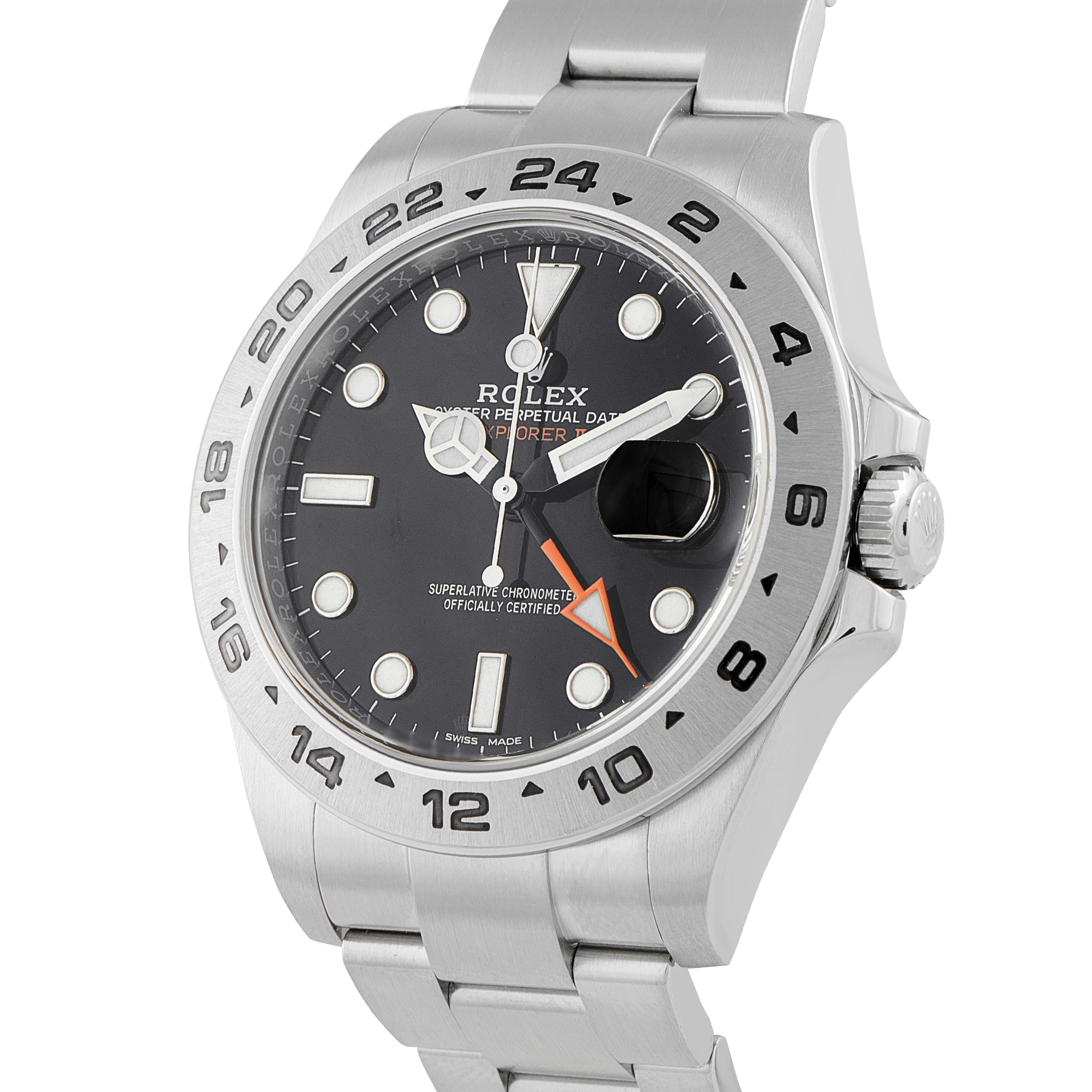 Offered pre-owned, this Rolex Explorer II Black Dial Steel Watch 216570 includes papers and the manufacturer’s box.