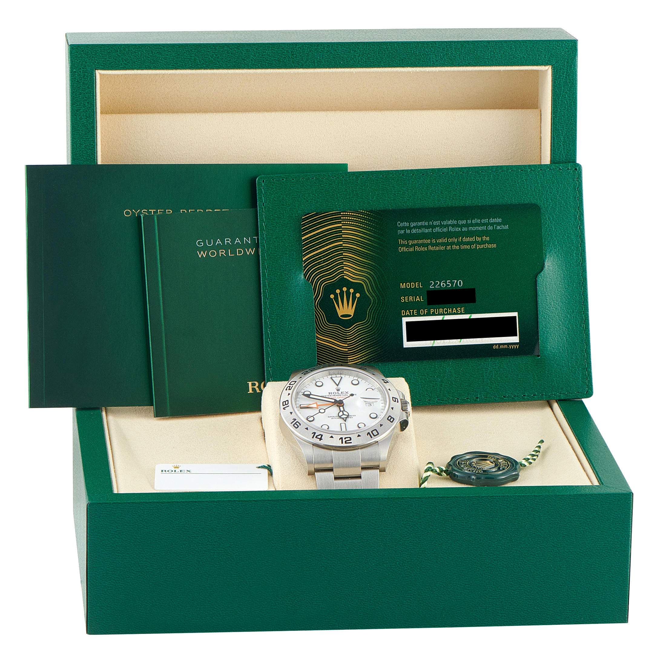 This unworn Rolex Explorer II White Dial Steel Watch 226570 comes with papers and the manufacturer’s box.