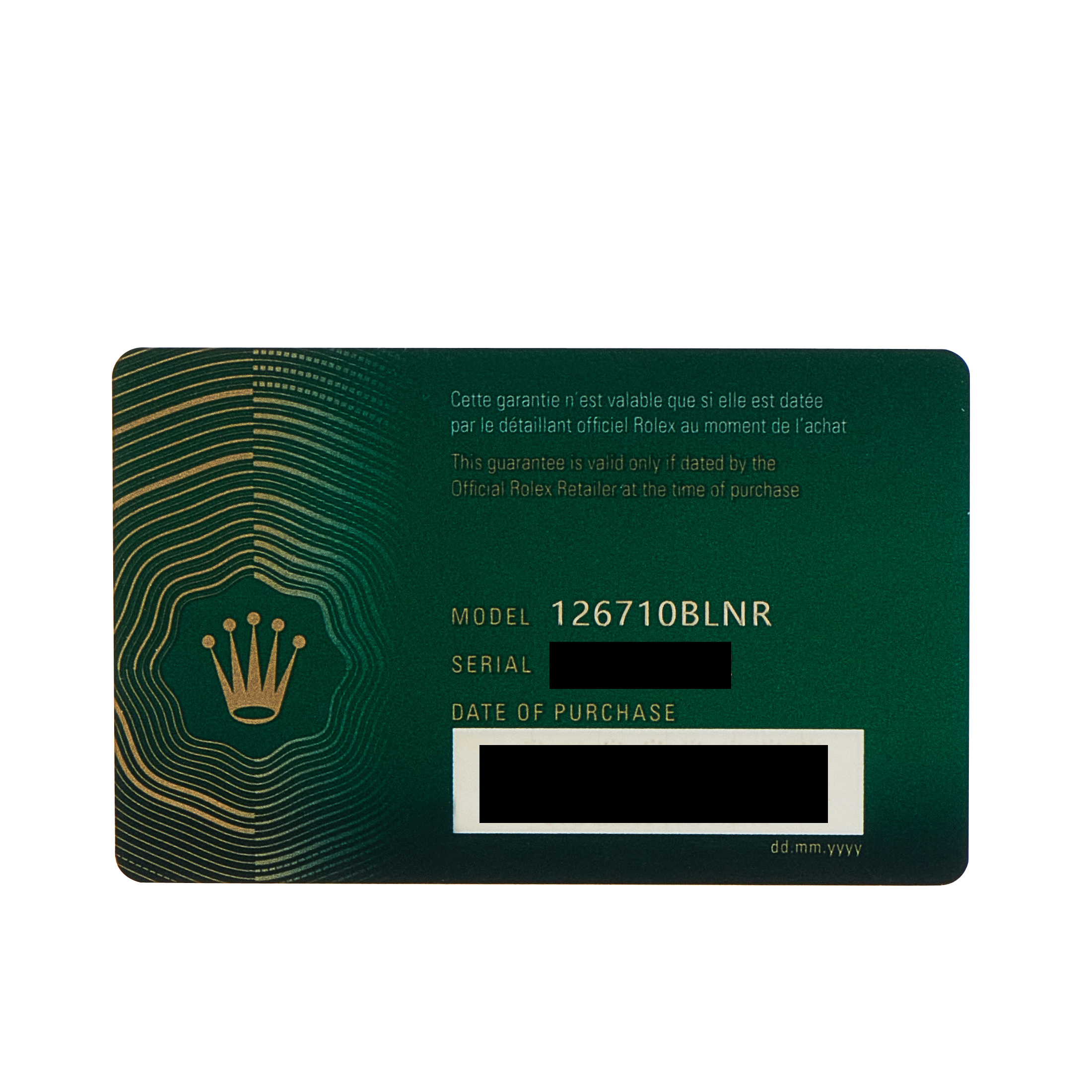 This pre-owned Rolex GMT-Master II Batman Watch 126710BLNR is accompanied by the manufacturer’s box and papers.