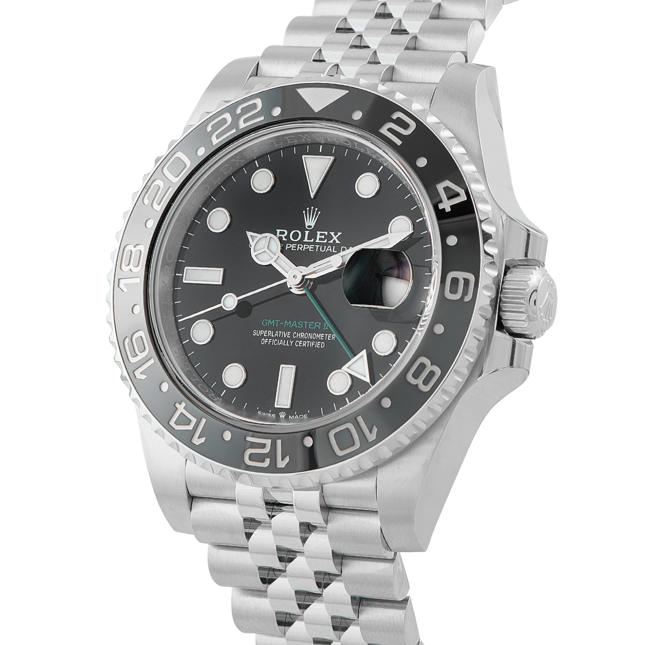 In a 40mm steel case with a Jubilee bracelet, it carries the familiar GMT-Master II format. The black dial carries an independently adjustable hour hand, while the 24-hour hand works in tandem with the bezel to track a second time zone. Caliber 3285 keeps it precise and travel-ready.