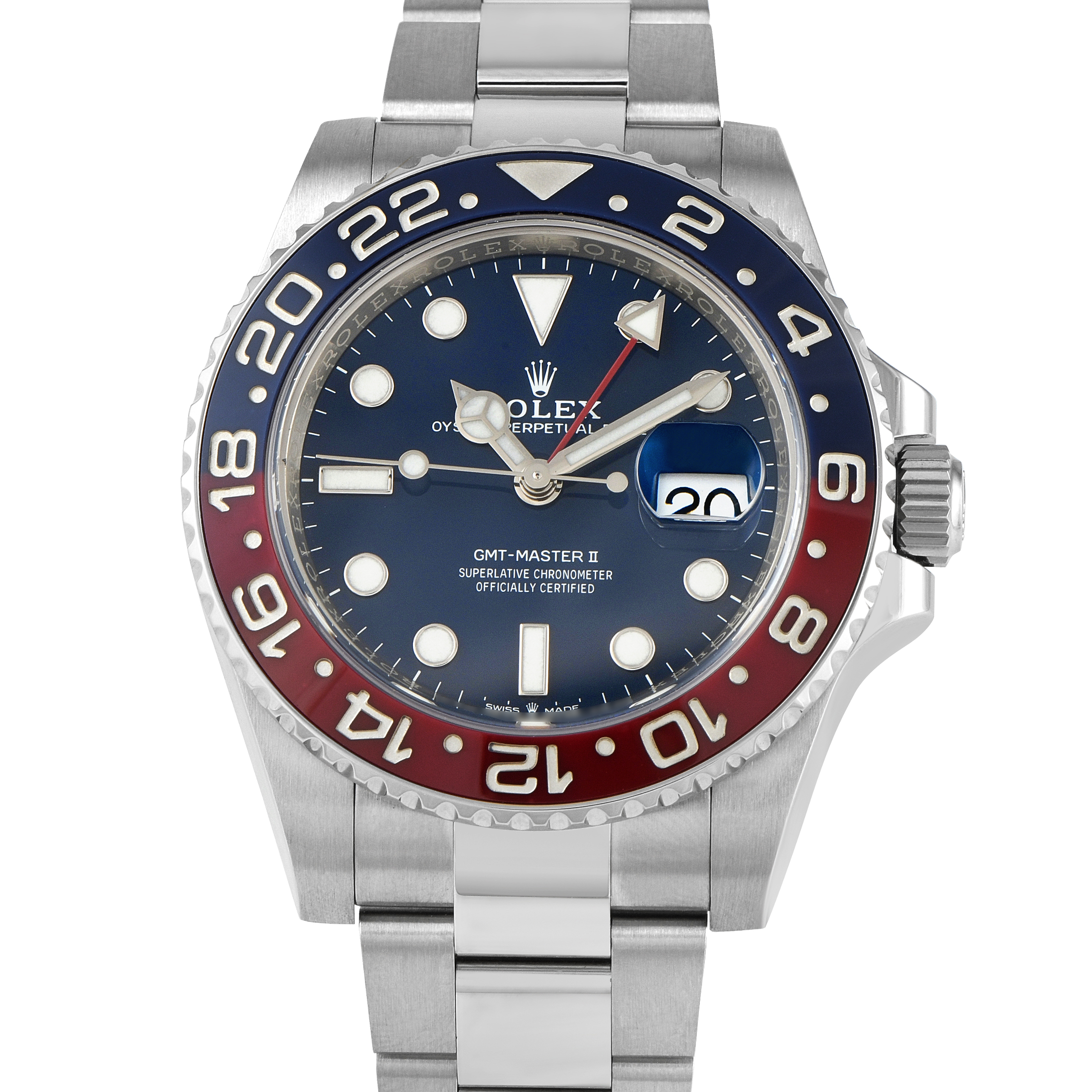 Crafted in luxurious white gold, the Rolex GMT-Master II Ref. 126719BLRO whispers refinement rather than demanding attention. Its midnight blue dial adds another layer of sophistication, projecting a look of confident elegance on the wrist. The watch also features the popular Pepsi bezel, in blue and red Cerachrom. The hour markers and hands, including the red GMT hand with an arrow tip, are filled with long-lasting blue luminescence for easy time reading.