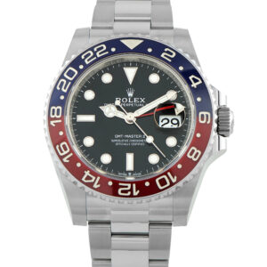 Offered pre-owned, this Rolex GMT-Master II “Pepsi” Oystersteel Watch 126710BLRO comes with papers and the manufacturer’s box.