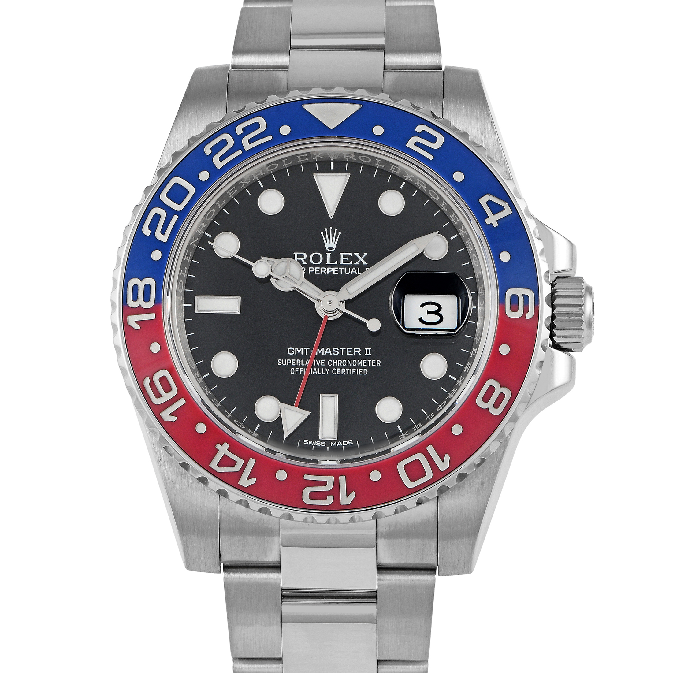 This is a pre-owned Rolex GMT-Master II Pepsi 18K White Gold Men’s Watch 116719BLRO. It comes with the manufacturer’s box and papers.