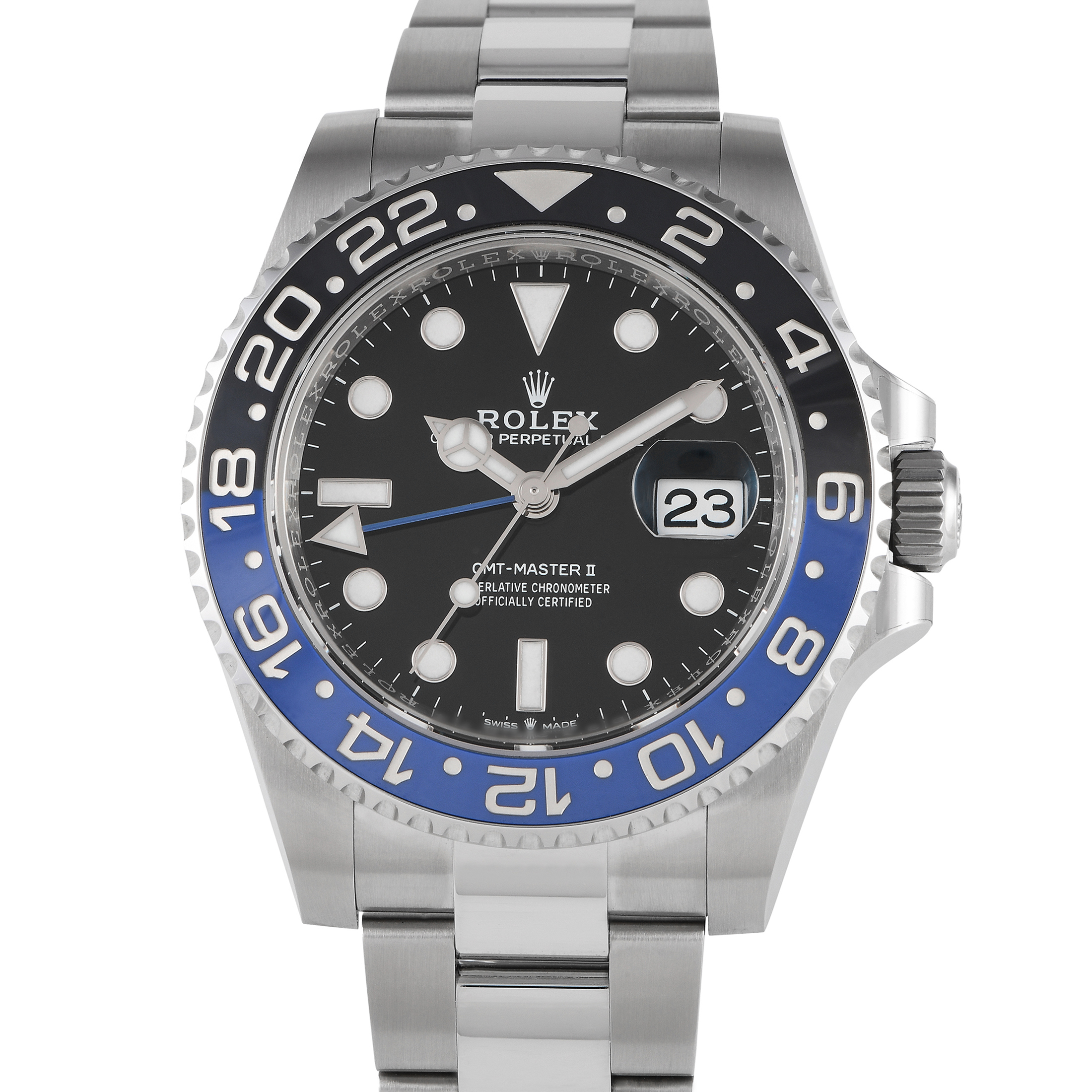 The Rolex GMT-Master II ref. 126710BLNR, better known as the “Batman,” debuted in 2019, replacing the original 116710BLNR. The watch has a 40mm steel Oyster case, a Triplock crown, an Oyster bracelet with polished center links, and a distinctive blue-and-black bezel insert. The caliber 3285 self-winding movement offers a Chronergy escapement, Parachrom hairspring, and 72 hours of power reserve.