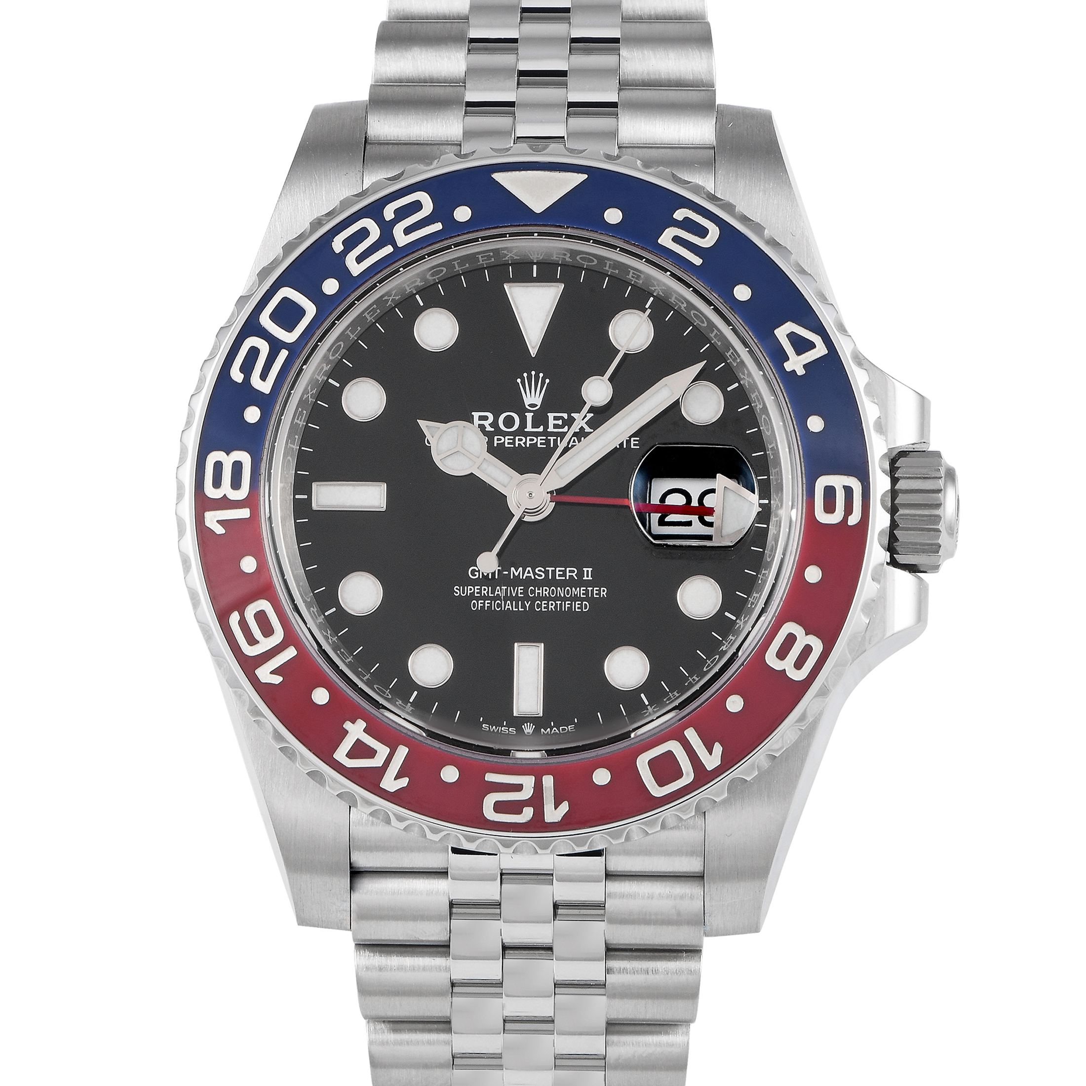 This pre-owned Rolex GMT-Master II Black Dial Jubilee Watch 126710BLRO is accompanied by papers and the manufacturer’s box.