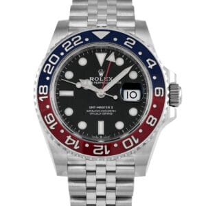 This pre-owned Rolex GMT-Master II Pepsi Jubilee Watch 126710BLRO comes with papers and the manufacturer’s box.